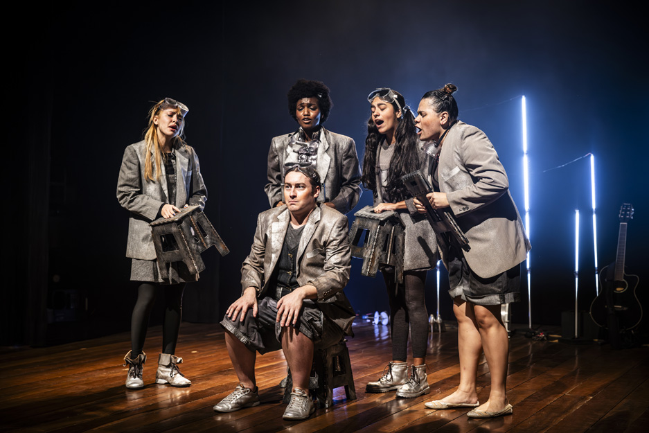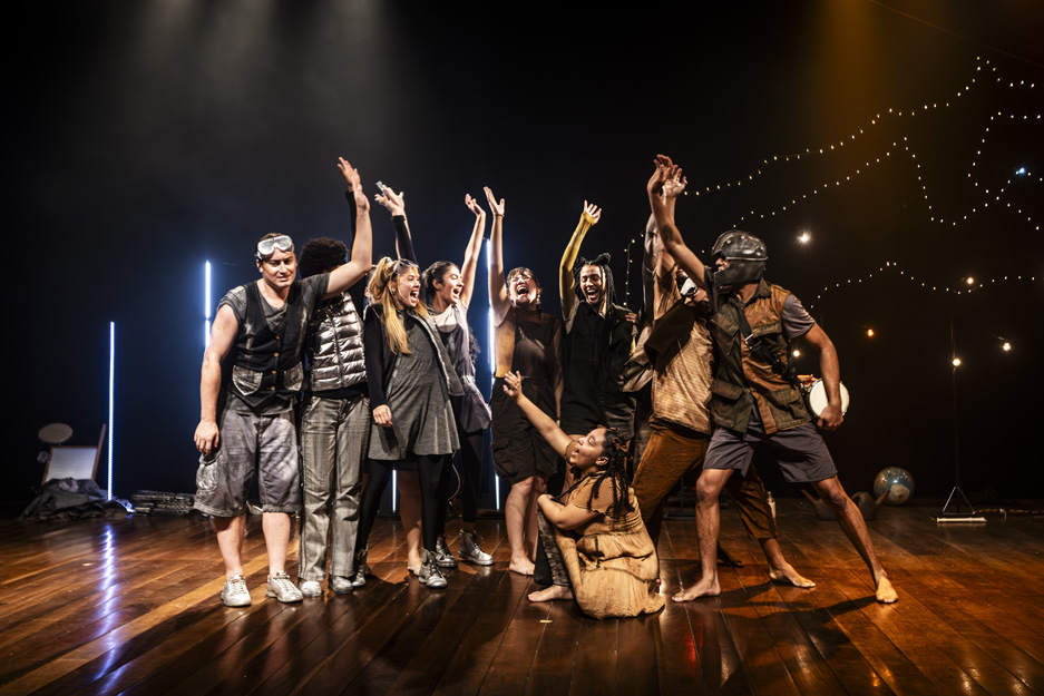 A peça levou os espectadores a um planeta pós-apocalíptico, utilizando uma narrativa rica para explorar temas urgentes, como desigualdades sociais e impactos ambientais, desafiando o público a refletir sobre essas realidades.