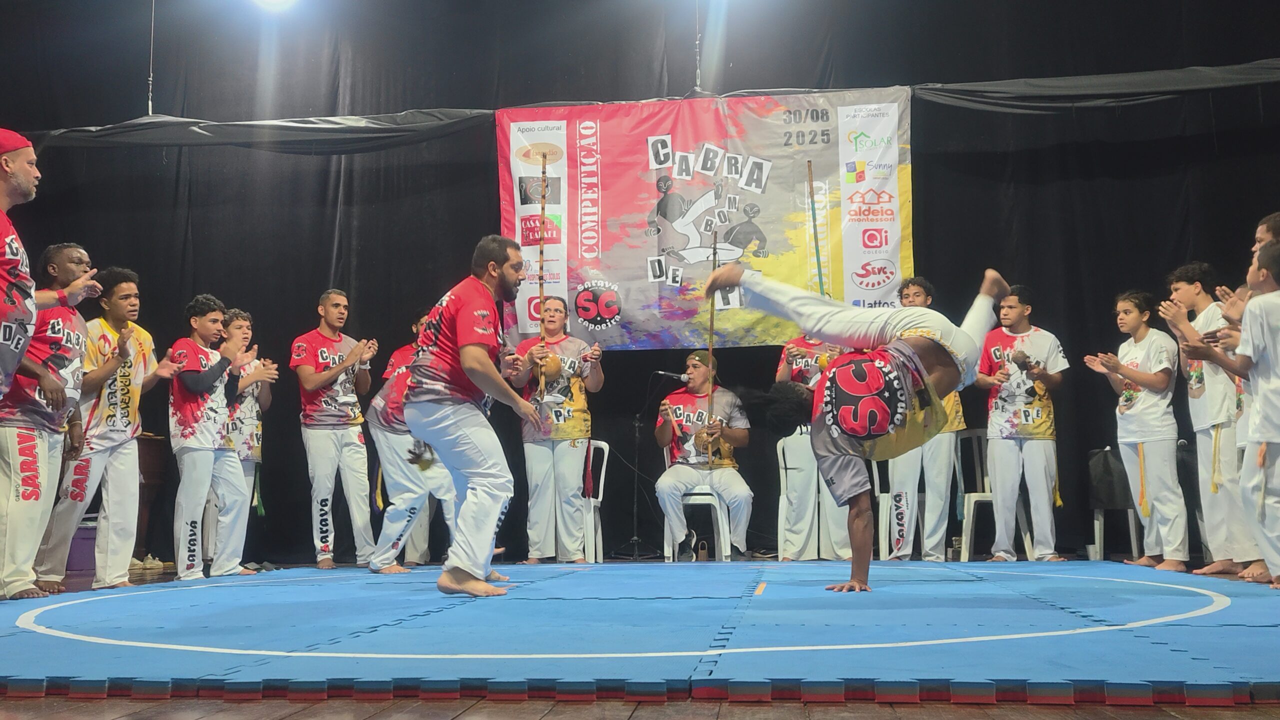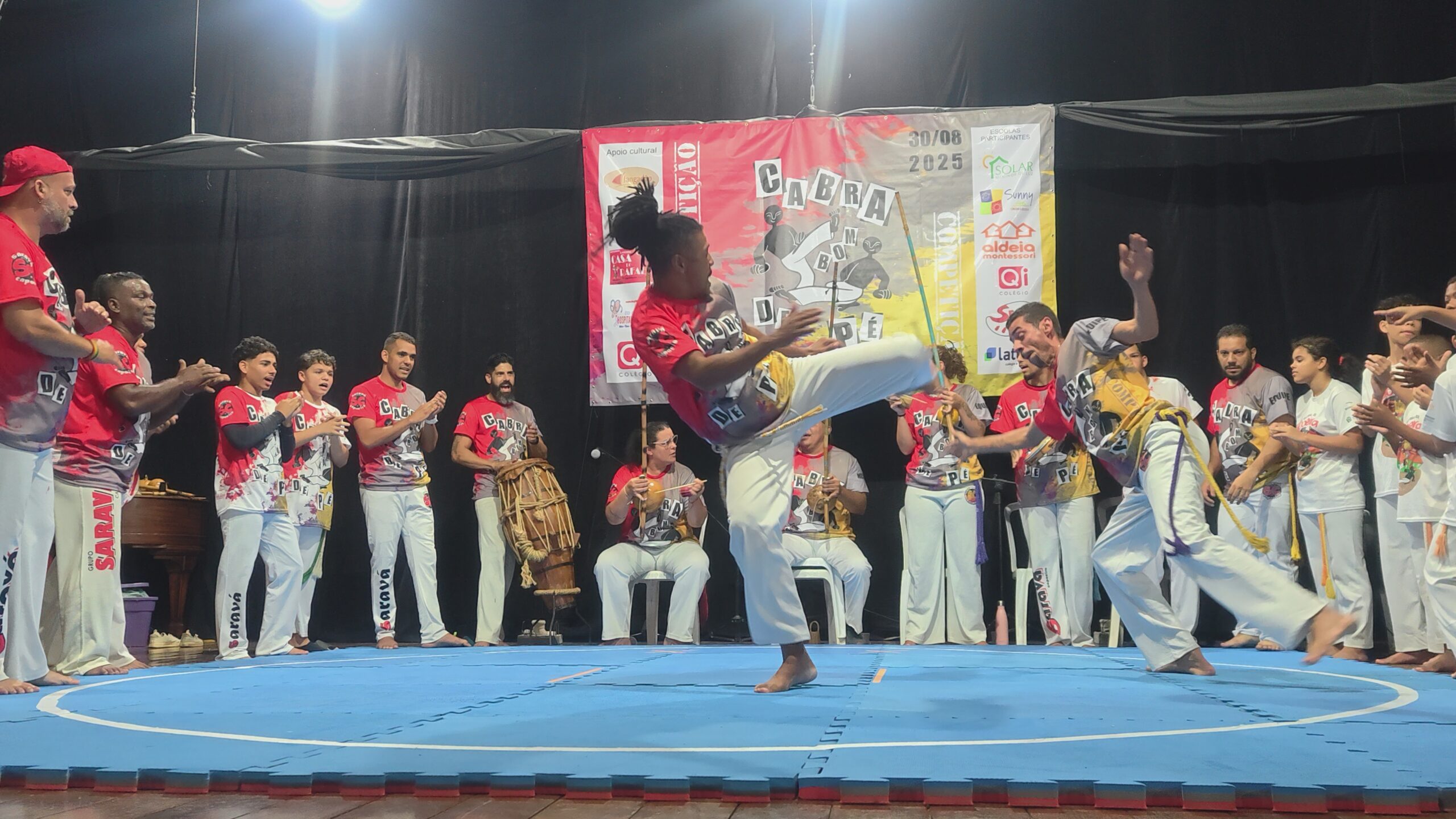 No dia 30 de agosto, o Solar Meninos de Luz recebeu pela primeira vez em sua sede o Campeonato Cabra Bom de Pé, evento criado pelo Mestre Ninho (Saravá Capoeira). Tradicionalmente realizado em espaços externos e com participação de diversos grupos, o campeonato é um movimento cultural independente que há anos conta com a presença do Solar. Em 2024, de forma inédita, nossa escola se transformou em palco dessa grande celebração da capoeira, reunindo alunos, mestres convidados e capoeiristas de diferentes lugares.